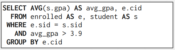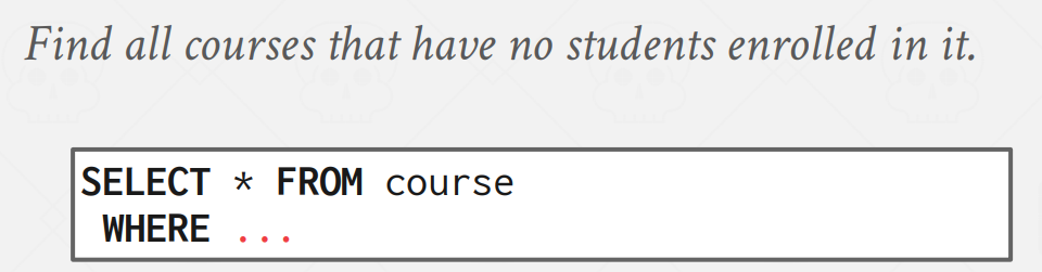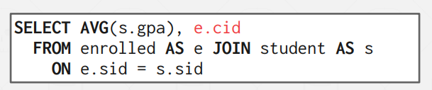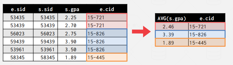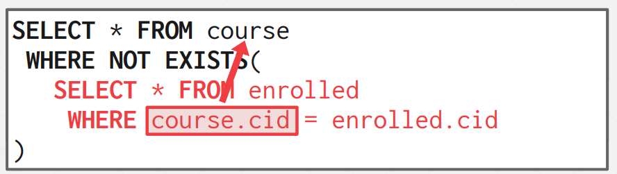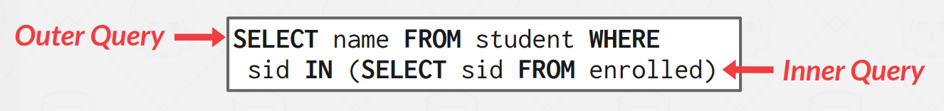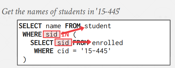 15-445를 `cid`로 가지는 사람들의 `sid` set에서 뽑고 싶은 상황이다.