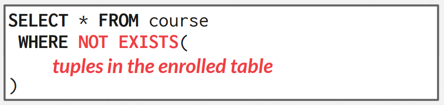 따라서 레코드가 존재하지 않는 course의 cid에 대하여 SELECT가 수행되고, 원하는 결과를 얻을 수 있다.