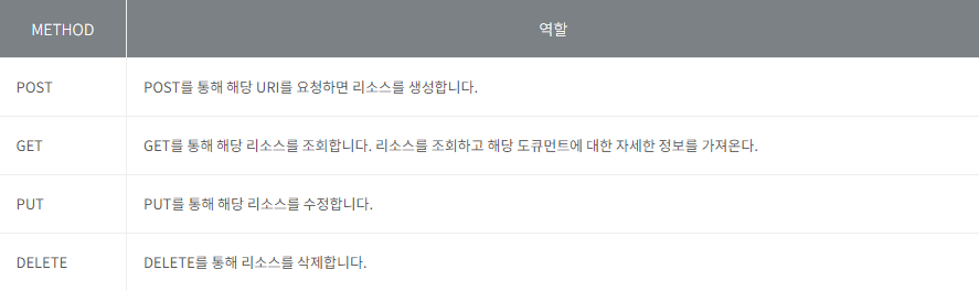 즉 다음과 같은 HTTP의 Method에 맞는 API를 작성해야 한다.