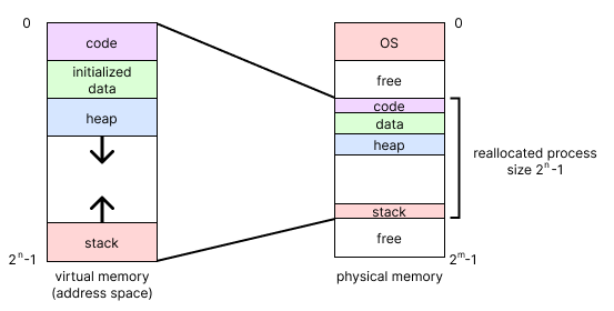 즉 Process가 실제로 Physical Memory의 어느 부분에 위치하는지와 관계 없이 주소 공간이 0부터 시작하게 된다.