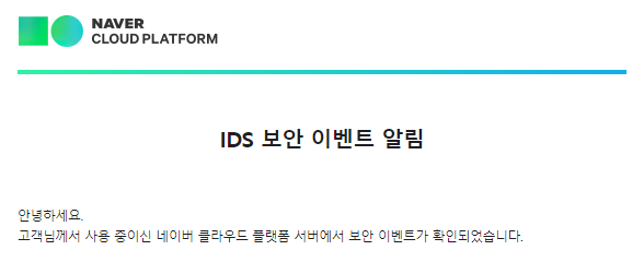 팀프로젝트를 진행하기 위해 nCloud에 서버를 열어놓고 있었는데 새벽에 다음과 같은 알람이 왔다...